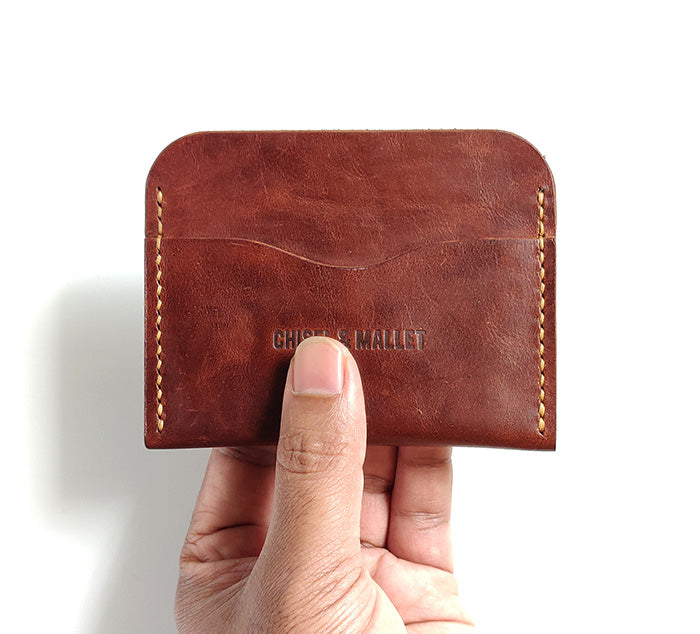 बीच में मुड़ी हुई मुद्रा/बिल और दोनों तरफ कार्ड रखने के लिए एक आसान बटुआ।