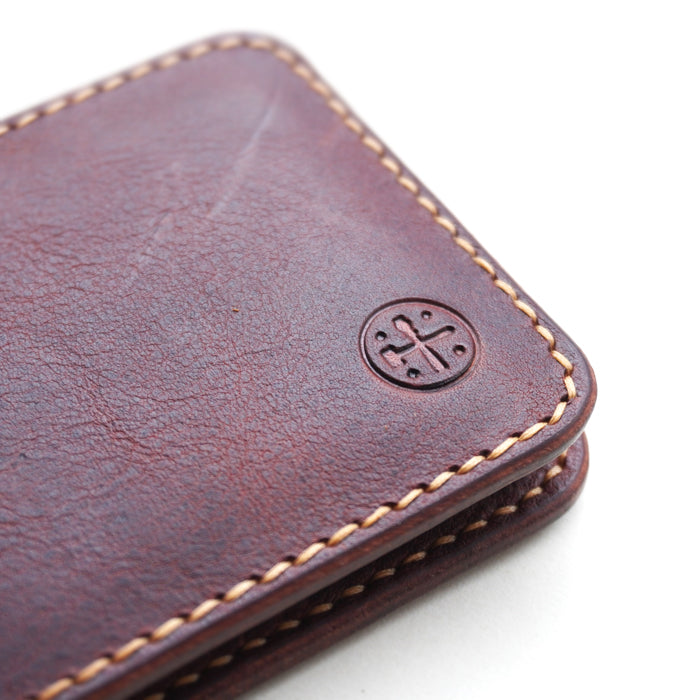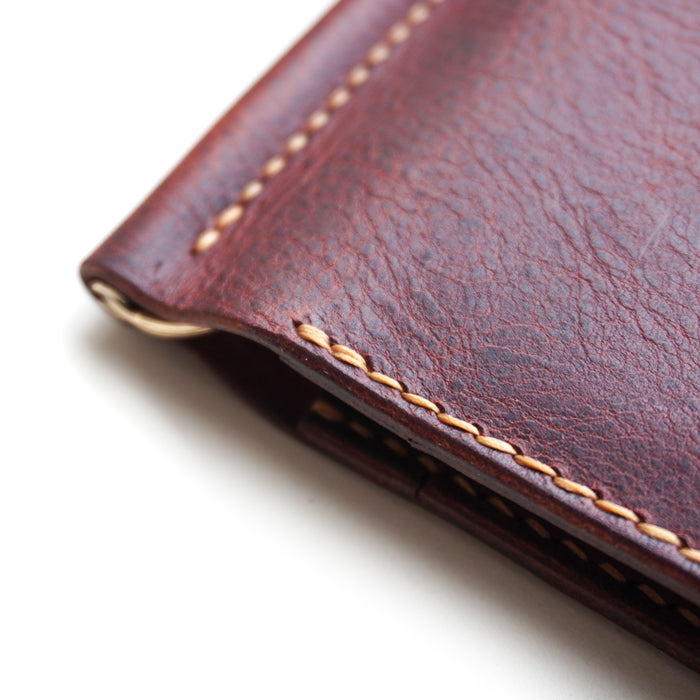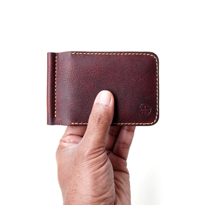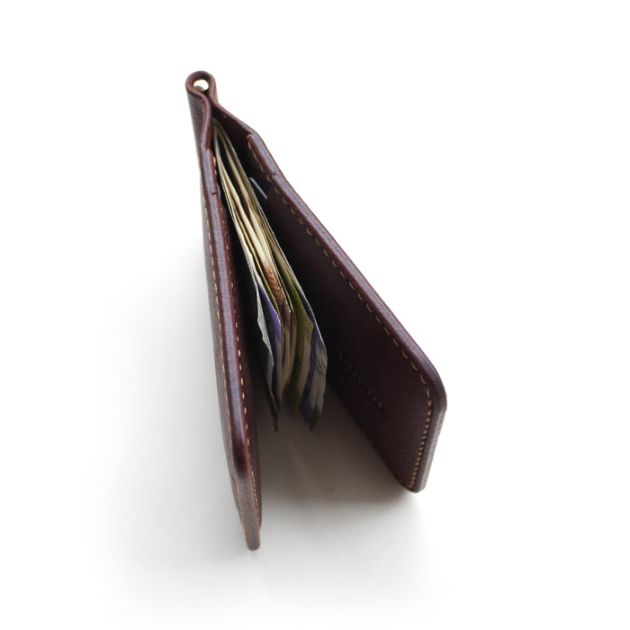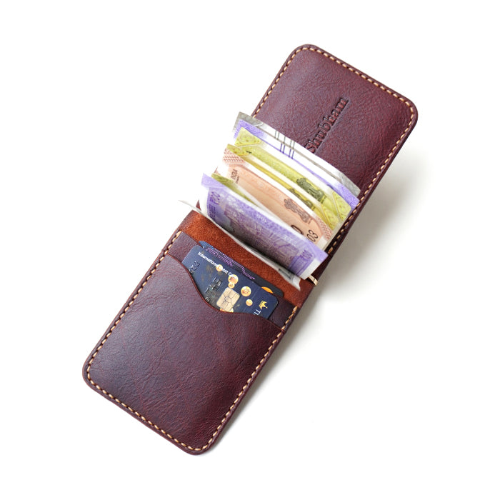 मुद्राओं और बिलों को सुरक्षित रूप से रखने के लिए 6 कार्ड स्लॉट और एक मनी क्लिप के साथ न्यूनतम और कॉम्पैक्ट बाइफ़ोल्ड वॉलेट।