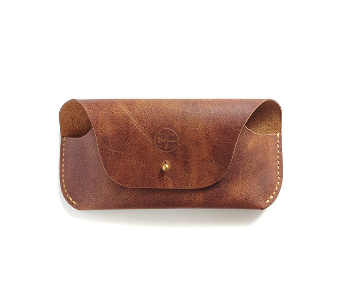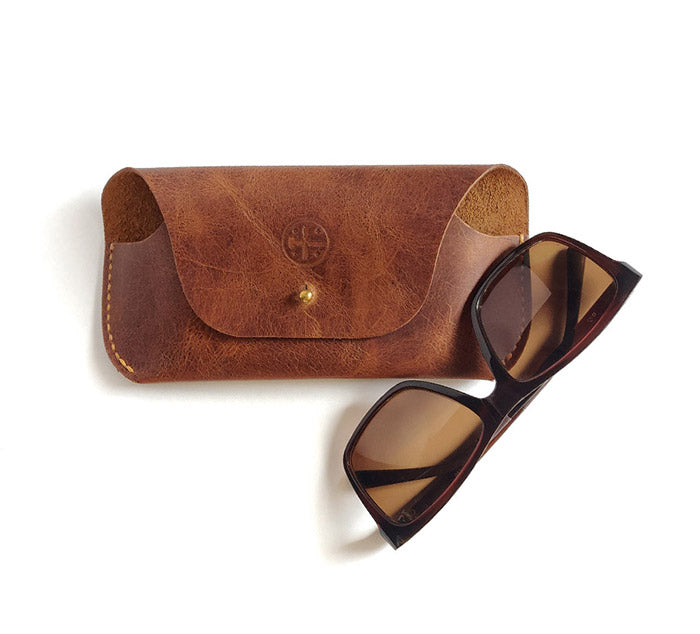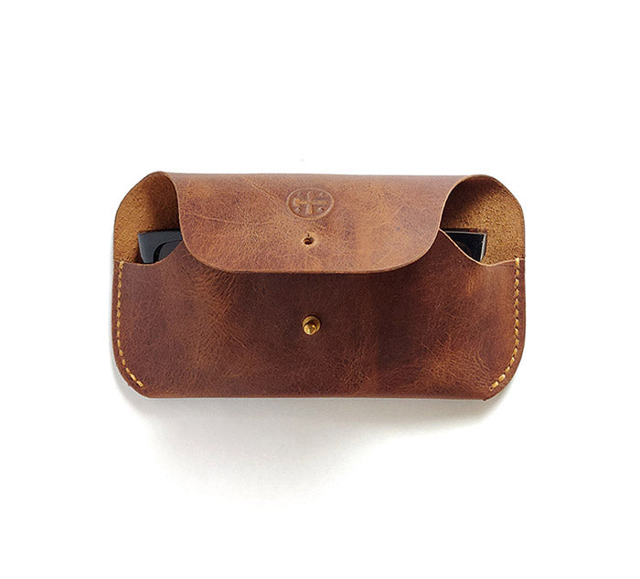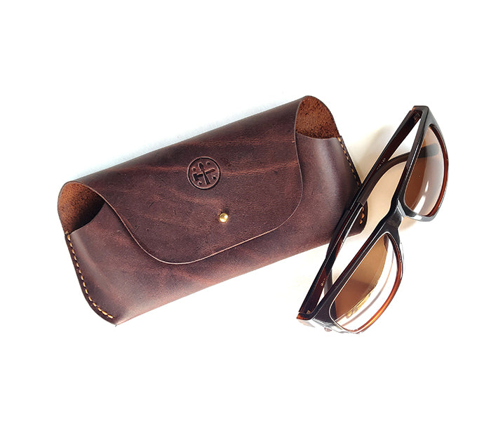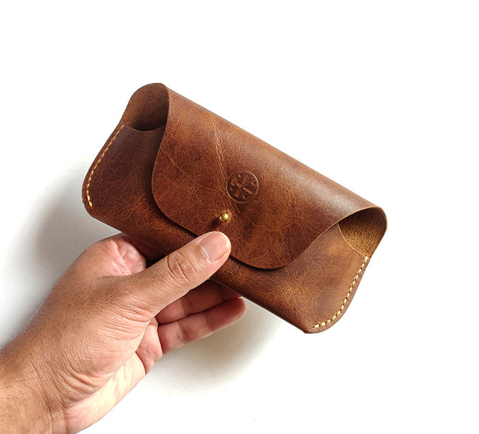 फुल ग्रेन चमड़े के एक टुकड़े से बना एक पारंपरिक धूप का चश्मा केस, आपके महंगे चश्मे की जोड़ी की सुरक्षा करने का वादा करता है।